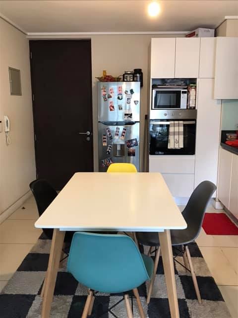 Dzine es un moderno edificio, que posee un diseño espectacular, con una entrada con jardines formados, seguridad y conserjería 24/7. Cuenta con sala de estudios en primer piso, estacionamientos de visitas. En último piso, piscina y gimnasio con vista despejada. Además de roof garden con vista panorámica. Sector muy tranquilo, a pasos del Metro Hernando de Magallanes y de Av. Las Condes. Gastos comunes de $110.000 app. Para invierno, posee calefacción por convector a gas. Contribuciones de $110.000. Imperdible oportunidad por alta plusvalía.