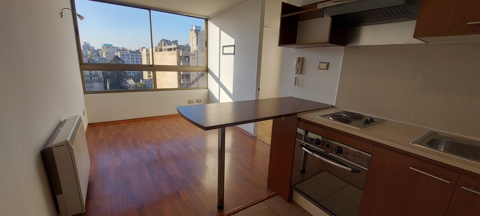 El departamento está en el piso 15, orientación norte, con vista despejada directa a la Torre Entel. Cuenta con living comedor con ventanal amplio, cocina integrada y equipada con horno, encimera y campana eléctricos. Excelente distribución para muebles. Dormitorio con closets, baño completo con cubierta de mármol. Conexión a lavadora. Todo el departamento posee piso fotolaminado de alto tránsito. Canalización para conexión de teléfono, internet y TV cable. Gasto común aproximado de $50.000.